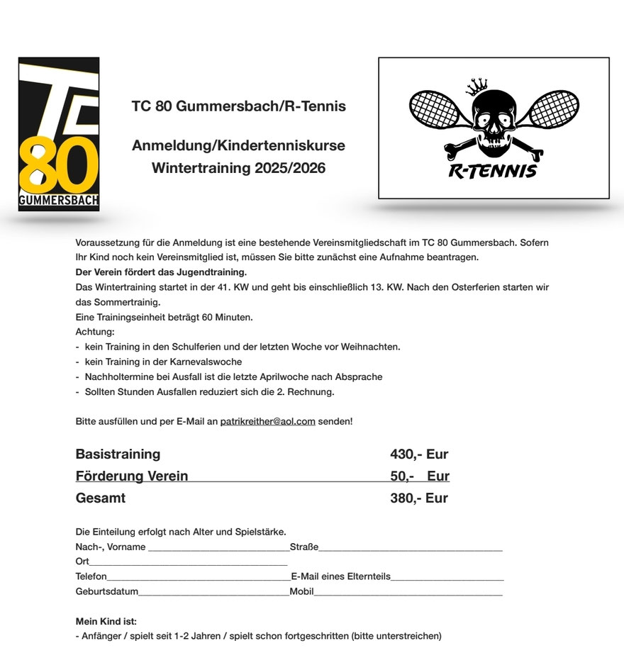 Ab Sommer unterstützen wir den TC 80 Gummersbach. Ein kleiner leistungsstarker Club in dem sehr viel Potenzial schlummert. Wir freuen